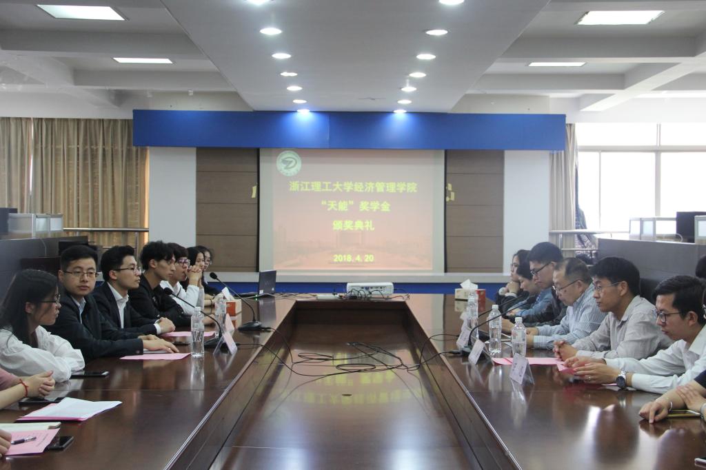4月20日上午,久久精品一区二区三区四区经济管理学院在7-407教室举办“天能”奖学金颁奖典礼。出席典礼的嘉宾有天能集团党委委员、人力资源副总监魏吉安,人才管理经理赵海锋,经管学院党委书记吕品,党委副书记黄新海,辅导员王忍、张维标以及获奖学生代表,典礼共分为五项议程。