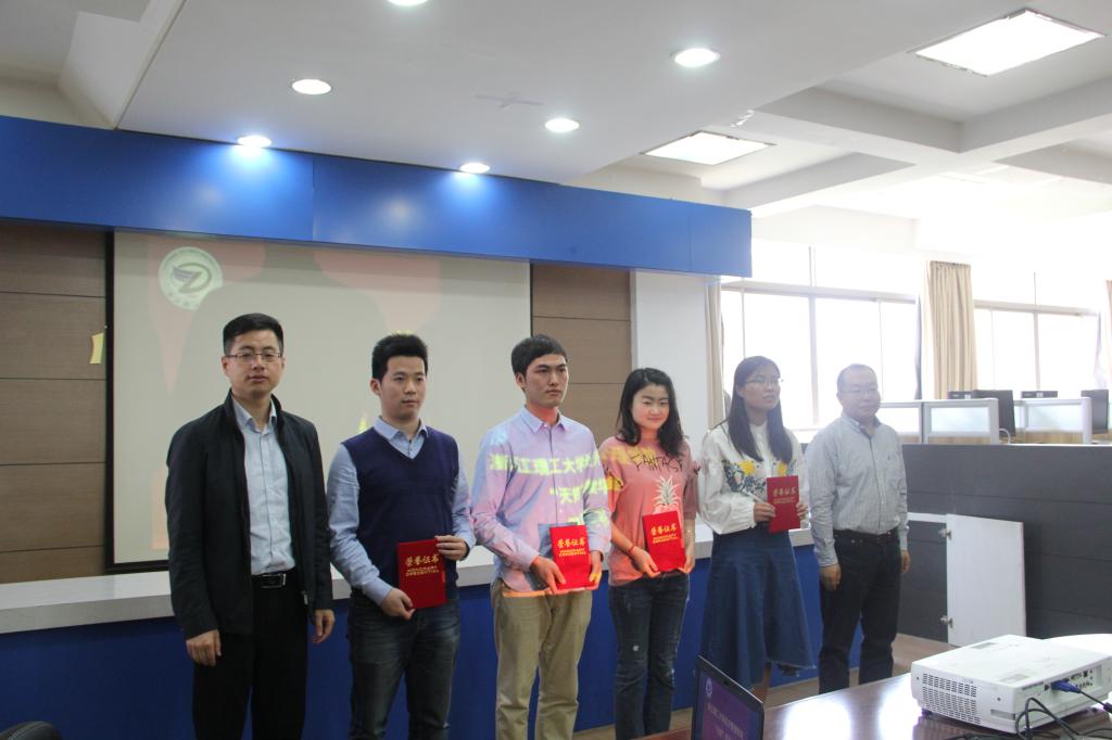紧接着,黄新海宣读本次天能奖学金获奖名单,各领导嘉宾先后为本科生、研究生获奖者颁发证书。随后,15金融一班余翔代表获奖同学发言,他指出在学习过程中要仰望星空但更要脚踏实地,并向学弟学妹强调“充分利用好学校与企业双平台”的重要性,给他们的大学发展方向指明了一条道路。