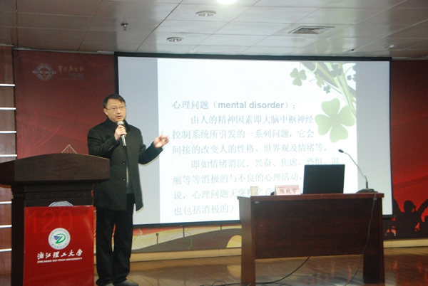 为普及心理卫生常识,提升辅导员和班主任的心理健康教育工作能力和水平,1月10日上午,党委学工部心理健康教育中心邀请浙江省医学会精神病学分会副主任委员、杭州市第七人民医院副院长陈致宇举办了《心理问题早期表现与对策》的科普讲座。心理咨询师代表、辅导员代表、部分17级新生班主任以及主要心理学生骨干到场聆听。报告由党委学工部副部长黄黎主持。