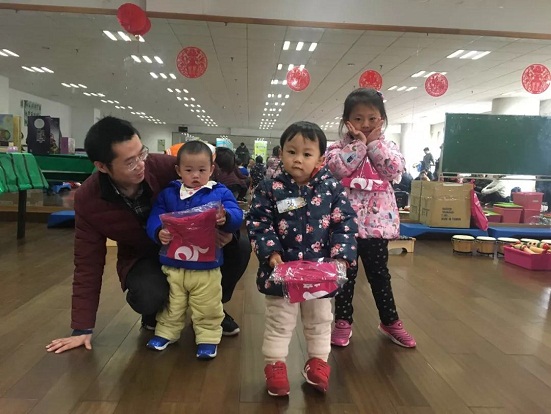 1月7日上午,在体育馆形体房举行了由校工会主办、美育江干分校协办的“新年亲子音乐会”。本次活动广大教职工参与热度非常高,共有42个家庭48位孩子报名。活动现场气氛火热,亲子互动游戏《跳格子》、律动游戏《母鸡孵蛋》、音乐游戏《欢乐满山谷》、乐器合奏《螃蟹波卡》等,孩子们听着音乐,欢快地跟着老师做动作,与家长合作完成各项游戏。游戏中间,还有现场抽奖环节,更增加了孩子们参与活动的积极性。