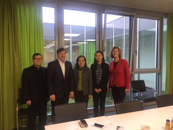 12月4日-5日,代表团访问了位于德国新乌尔姆市的新乌尔姆应用科技大学。该校从2013年开始与我校合作,目前已有超过40名我校学生赴该校进行短期交流学习。12月4日下午,代表团从荷兰抵达德国后,会见了新乌尔姆应用科技大学副校长Jacob教授,并与其讨论汽车工业4.0培训项目,该项目旨在通过引进德国先进管理经验,为浙江省汽车制造业贴身打造学习课程。12月5日上午,代表团会见了新乌尔姆应用科技大学中德合作研究项目负责人Reisach教授,以及信息管理学院院长Dehnert教授,双方分别介绍了各自学院的概况,就信息管理硕士生交换项目和暑期短期交流项目展开了讨论。当日下午,代表团与该校国际处主任Seitz女士,留学生负责人Hausler女士和Briel女士一同走访了该校留学生宿舍,并看望了本学期在该校交换学习的五名学生。双方在回顾近五年的合作历程后,决定在延续合作的同时,进一步拓展合作规模。